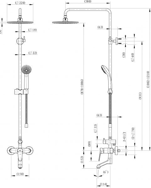 Душевая стойка для ванны Bravat Eco с большим плоским диском верхнего душа и смесителем с поворотным изливом. Серия известна не только своим качеством, но и высоким уровнем эргономики.