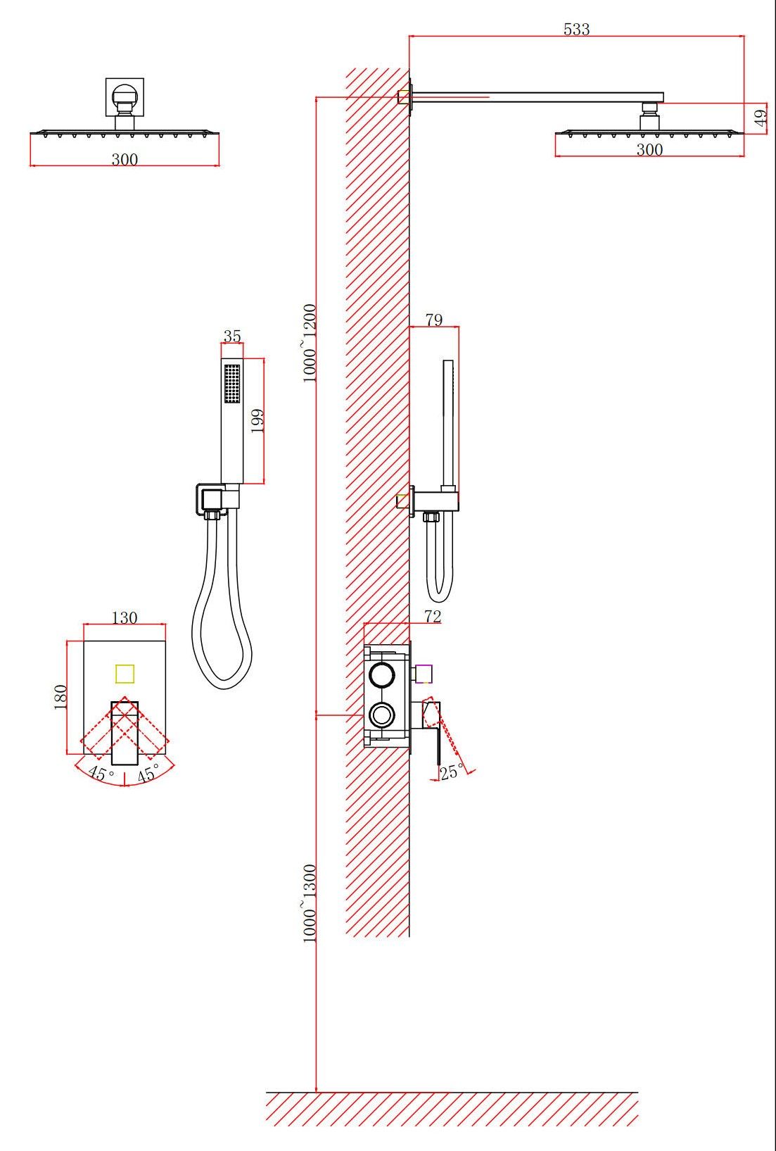 • Размер ручного душа, см: