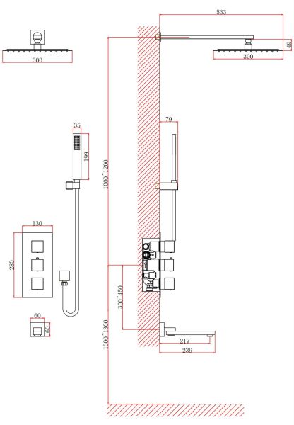 • Размер верхнего душа, см: