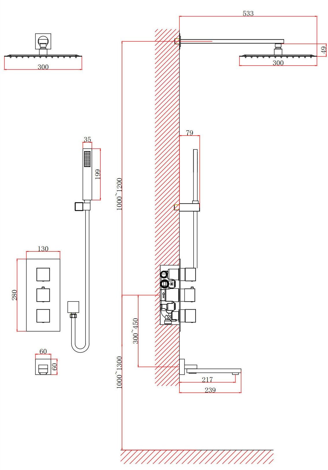 • Размер ручного душа, см: