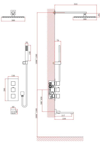 • Размер верхнего душа, см: