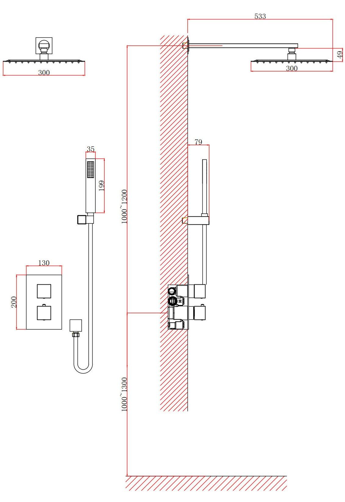• Размер верхнего душа, см: