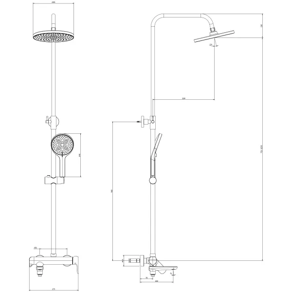 душевая система со смесителем