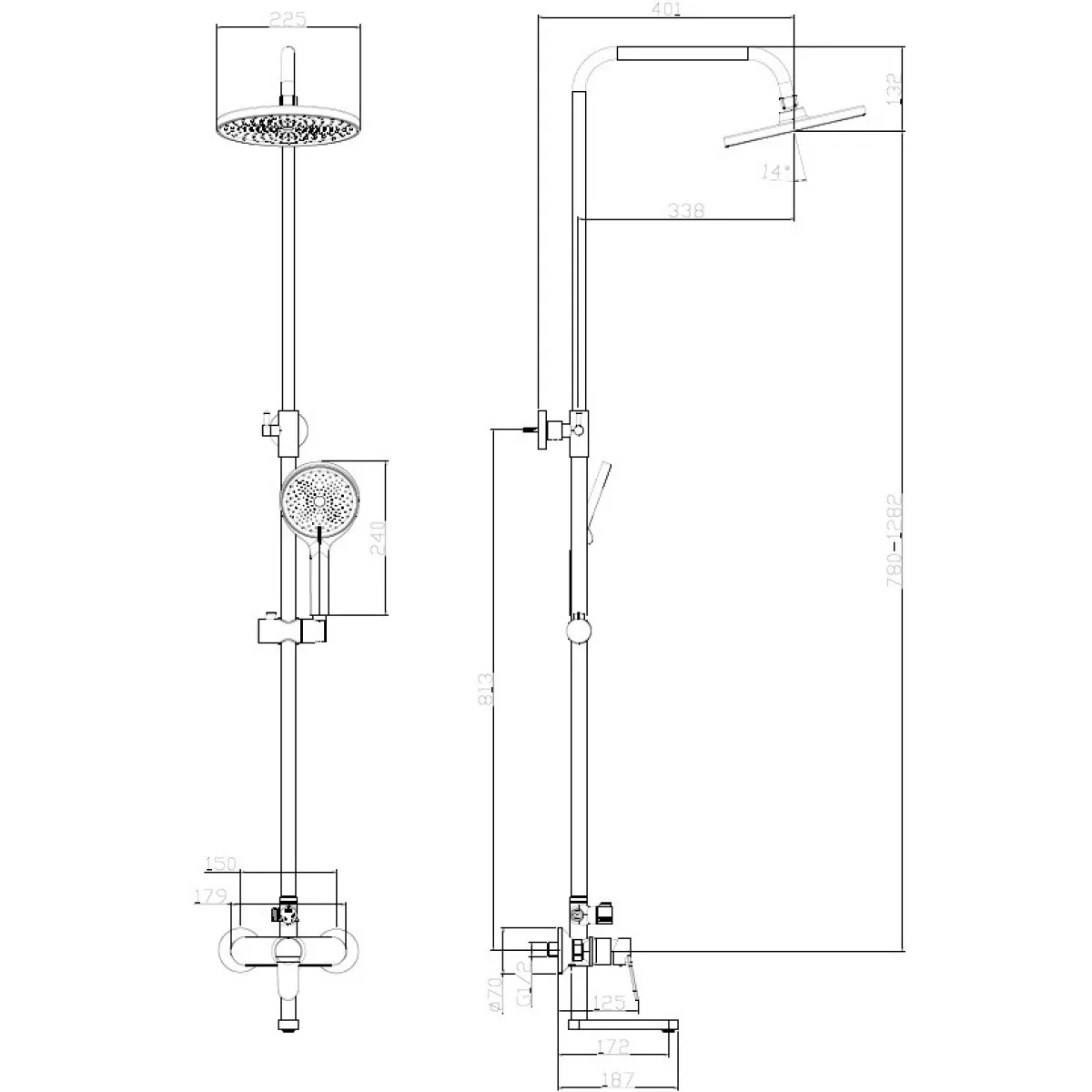 • Размер верхнего душа, см: