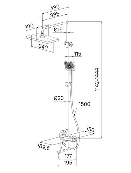 • Размер ручного душа, см: