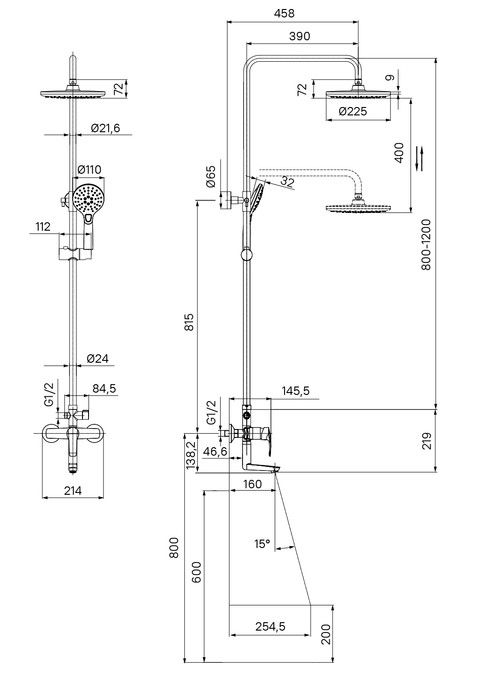 Регулируемая высота стойки (от 800 до 1200 мм) позволяет принимать душ с комфортом даже самым высоким.