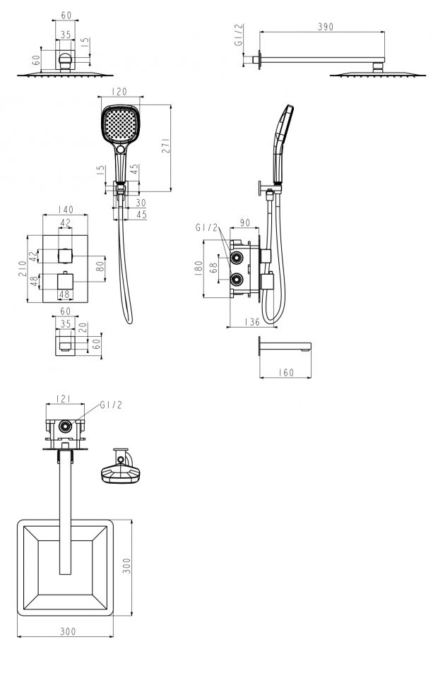 Душевая система скрытого монтажа Grocenberg GB5050CR с Термостатом Vernet (Франция) Хром