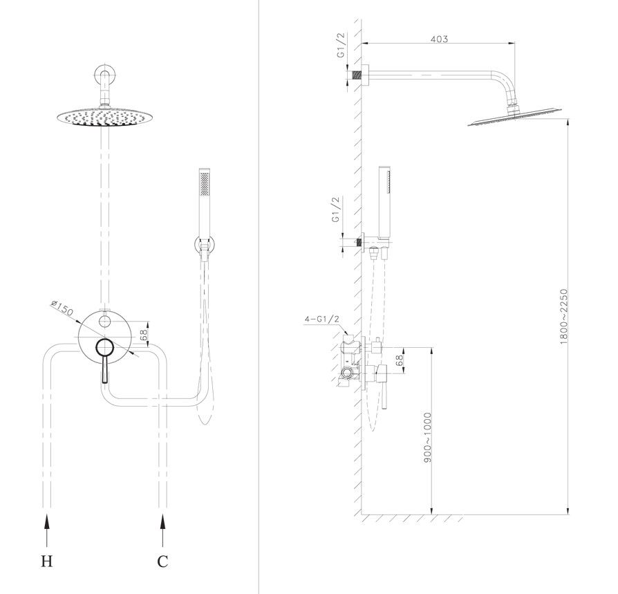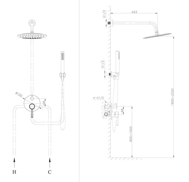 • Размер верхнего душа, см:
