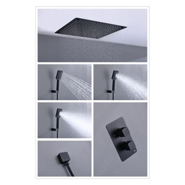 • Душевая система скрытого монтажа, с термостатом с квадратной лейкой (латунь) в стиле модерн