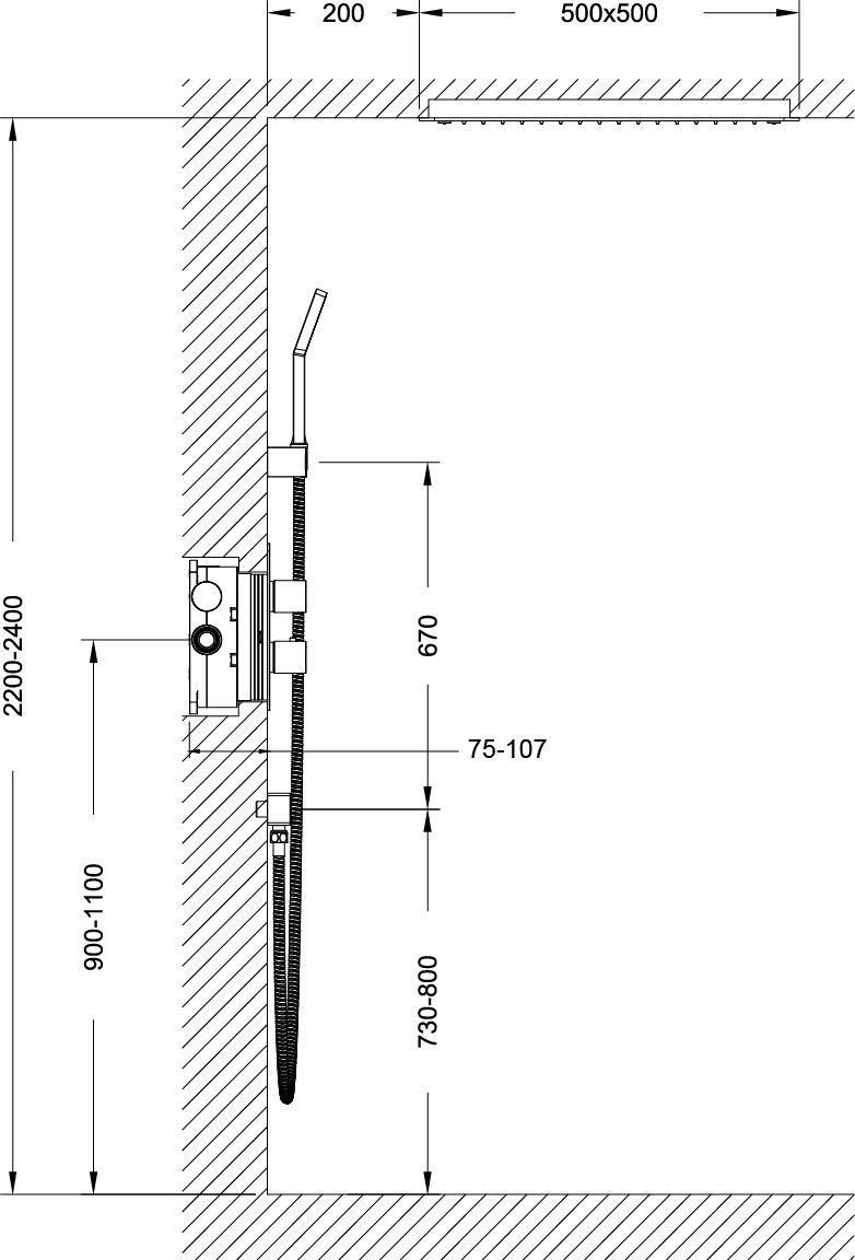 • Размер верхнего душа: 500 x 500 мм