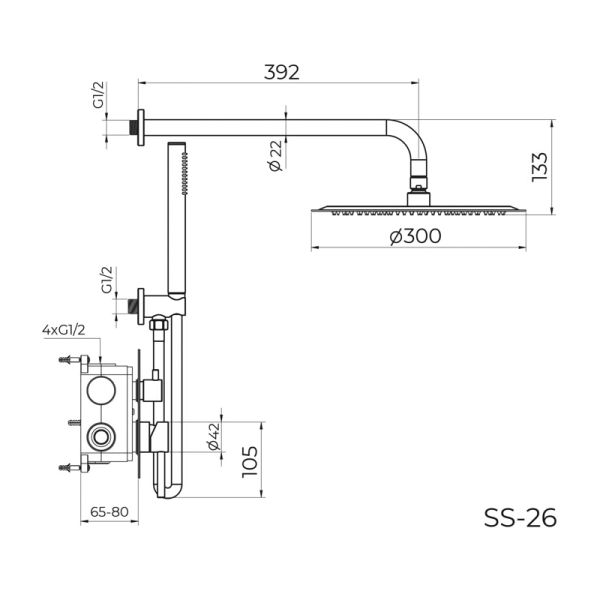 Душевая система встраиваемая Knotlor SS-26/GM, вороненая сталь