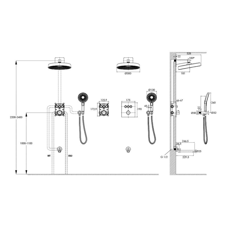 Душевая система встраиваемая с термостатом Bronze de Luxe OMG! 1011GM, графит