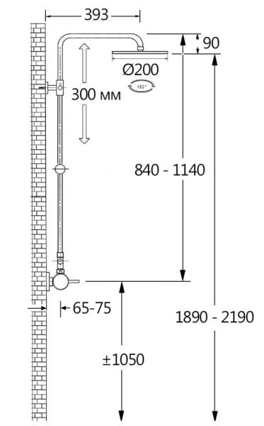 состоит из: верхний душ, ручной душ, смеситель для душа, штанга для душа, держатель для душаверхний душ 200 1jetразмер душевого диска: 200 x 200 ммтип струи: Rainшарнирное соединение: регулируемый угол верхнего душадлина держателя для душа от стены: 393 ммдержатель для ручного душа регулируемый по высотеповоротный держатель для душавид монтажа: внешний монтажсоединительная резьба G ½межосевое подключение 150 мм ± 12 ммподъемная труба может быть укорочена по высотеИталия2 года гарантии