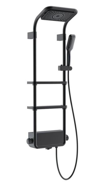 Душевая стойка AQUAme AQM8003B с термостатом чёрный матовый