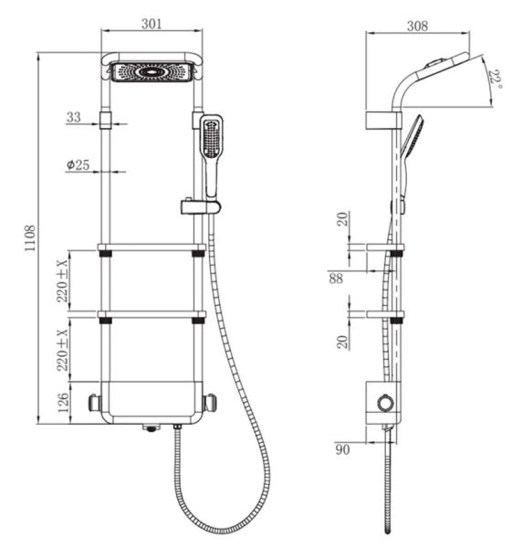 состоит из: верхний душ, ручной душ, термостат для душа, штанга для душа, держатель для душаверхний душ 240 1jetразмер душевого диска: 240 x 148 ммтип струи: Rainшарнирные соединения: регулируемый угол верхнего душаДушевая лейка: 1 струяС изливомдлина держателя для душа от стены: 308 ммдержатель для ручного душа регулируемый по высотеповоротный держатель для душавид монтажа: внешний монтажсоединительная резьба G ½межосевое подключение 150 мм ± 12 ммИталия2 года гарантии