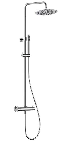состоит из: верхний душ, ручной душ, термостатический смеситель для душа, штанга для душа, держатель для душаверхний душ 250 1jetразмер душевого диска: 250 x 250 ммтип струи: Rainдушевая лейка 24 мм, 1 режима струишарнирное соединение: регулируемый угол верхнего душадлина держателя для душа: 340 ммдержатель для ручного душа регулируемый по высотеповоротный держатель для душавид монтажа: внешний монтажсоединительная резьба G ½межосевое подключение 150 мм ± 12 ммподъемная труба может быть укорочена по высоте 75-480 ммИталия2 года гарантии