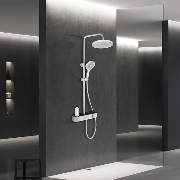состоит из: верхний душ, ручной душ, смеситель для ванны, штанга для душа, держатель для душа; верхний душ 260 1jet; размер душевого диска: 260 мм, тип струи: Rain; душевая лейка 126 мм, 3 режима струи; каскадный излив; шарнирное соединение: регулируемый угол верхнего душа;длина держателя для душа: 400 мм;держатель для ручного душа регулируемый по высоте; поворотный держатель для душа; вид монтажа: внешний монтаж; соединительная резьба G ½; межосевое подключение 150 мм ± 12 мм; телескопическая штанга; подъемная труба может быть укорочена по высоте 100-450 мм; шланг 1500 мм; 2 года гарантии.