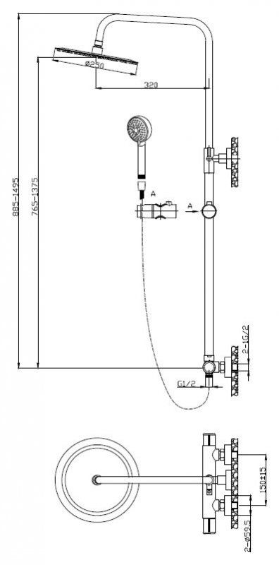 Размер верхнего душа: 25 см