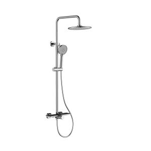 Душевая стойка от датского производителя Black&White в цвете глянцевый хром. Корпус штанги и смесителя производится из латуни марки HPB 59– безопасный для здоровья сплав, выдерживающий высокое давление воды. Для управления потоками и температурой установлен прогрессивный картридж без регулировки давления, для экономии воды, а также в данной серии переключатель режимов установлен сразу за картриджем в виде кольца c продольными насечками – нетривиальное решение, которое облегчает уборку. Верхняя крышка смесителя стилизована под белый мрамор с прожилками. Из потребителей установлен верхний и ручной душ, а также излив для наполнения емкостей.