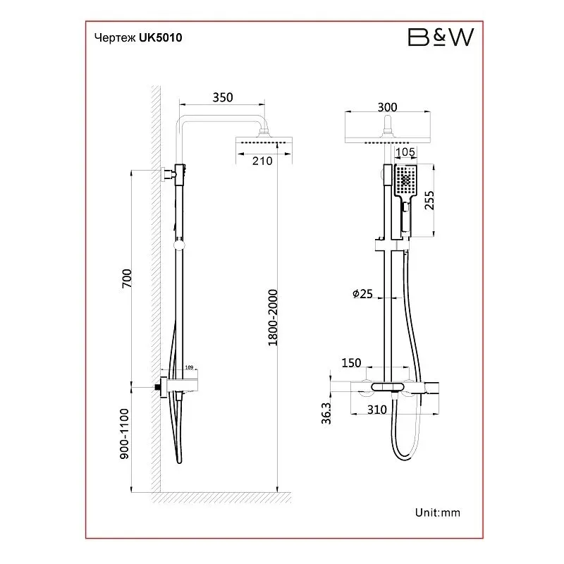 Душевая система Black&White Universe UK5010B, цвет черный матовый, 5010ВUK