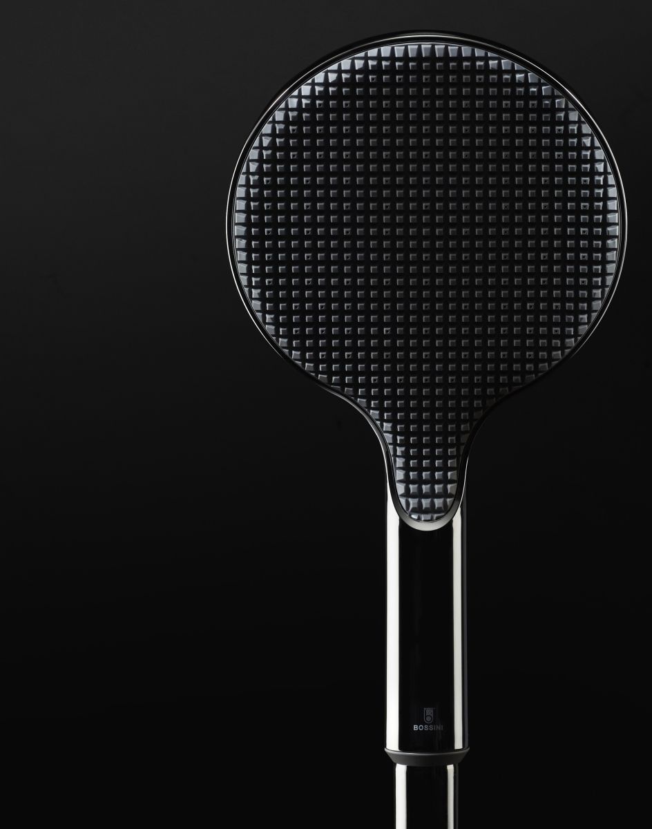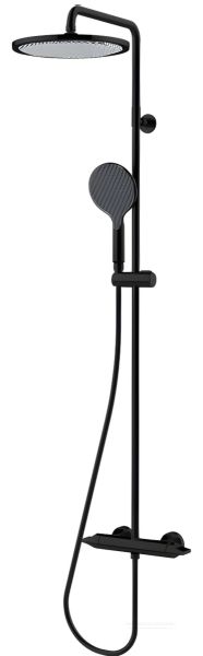 Bossini Apice душевая система: смеситель, стойка с верхним поворотным душем 28 см, с ручным душем, цвет черный матовый.