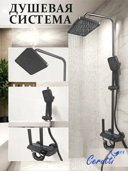 Душевая стойка Ceruttispa C-2A с кнопочным смесителем графит купить