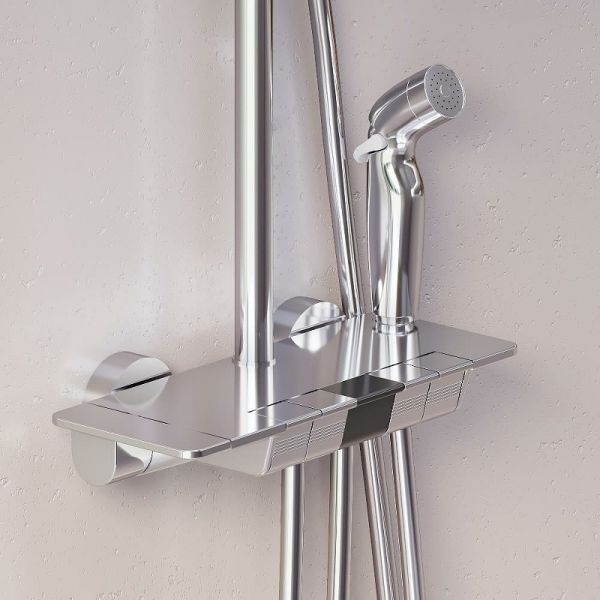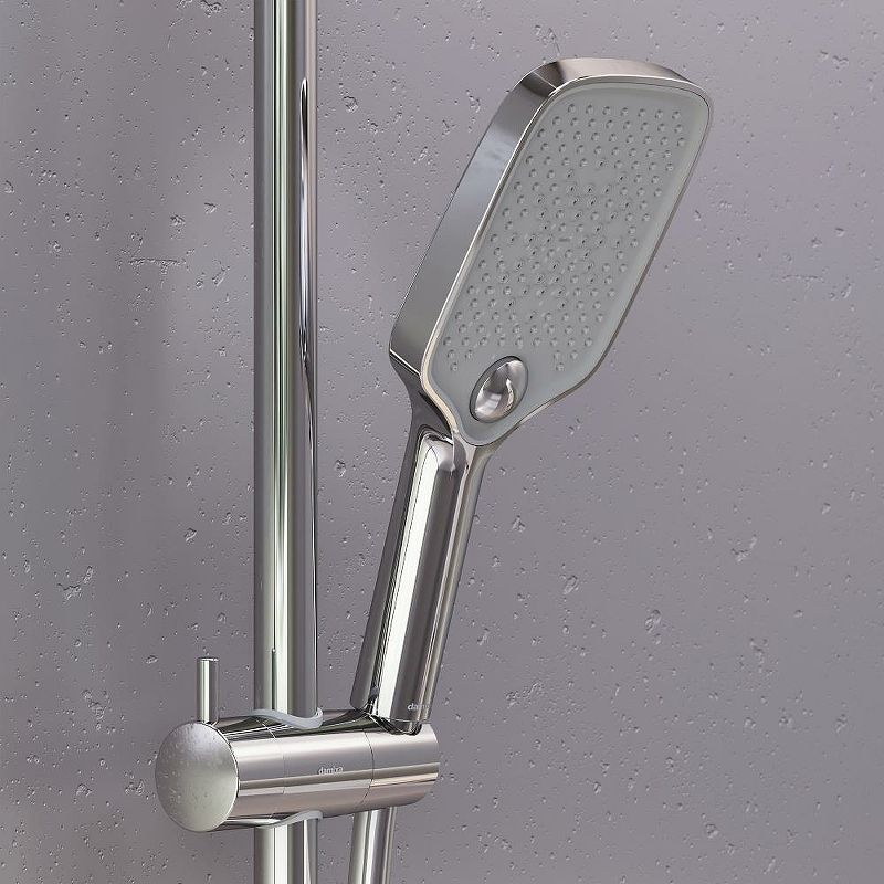 Душевая стойка Damixa Gala 953770000 с термостатом ХромДушевая система Gala обладает мягкими геометричными формами, которые идеально впишутся в современную ванную комнату. Минималистичная и стильная, она отличается самым широким функционалом в линейке и удовлетворит даже искушенного пользователя. Максимальная безопасность и технологичность: термостатический картридж 35 мм обеспечивает точную настройку температуры и напора воды. Душевая система оснащена автоматическим дисплеем, отражающим температуру воды в реальном времени. Непревзойдённый комфорт и удобство: тонкий латунный корпус выполнен в виде компактной полочки, где вы можете хранить все необходимые вещи. Благодаря телескопической штанге с диапазоном регулировки в 400 мм водные процедуры будут одинаково комфортны абсолютно для всех членов семьи. Простота и минимализм во всем: переключайте потоки воды между изливом, гигиеническим душем, ручной и тропической лейкой, а также плавно управляйте напором воды нажатием нескольких клавиш. Настоящее SPA прямо у вас дома: наслаждайтесь увеличенным размер тропической лейки с регулируемым углом наклона и 3-мя режимами ручного душа. Возможность включения 2-х или 3-х режимов одновременно сделает ваши ежедневные ритуалы незабываемыми.