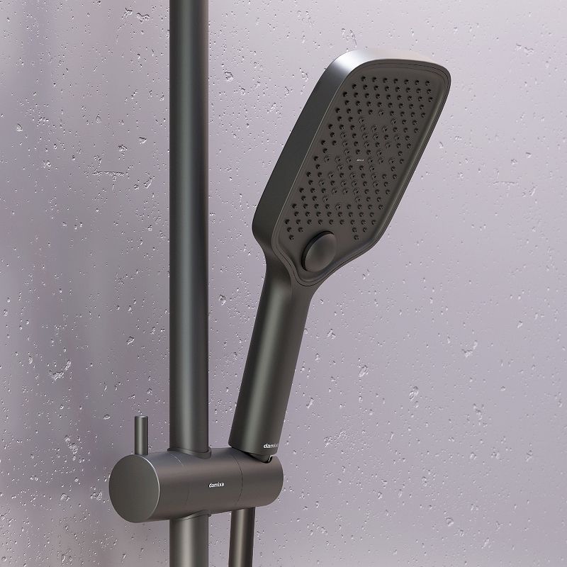 Душевая стойка Damixa Gala 953770300 с термостатом черная матоваяМягкие геометричные формы душевой система Gala в сочетании с трендовым черным покрытием идеально впишутся в современную ванную комнату. Минималистичная и стильная, она отличается самым широким функционалом в линейке и удовлетворит даже искушенного пользователя. Максимальная безопасность и технологичность: термостатический картридж 35 мм обеспечивает точную настройку температуры и напора воды. Душевая система оснащена автоматическим дисплеем, отражающим температуру воды в реальном времени. Непревзойдённый комфорт и удобство: тонкий латунный корпус выполнен в виде компактной полочки, где вы можете хранить все необходимые вещи. Благодаря телескопической штанге с диапазоном регулировки в 400 мм водные процедуры будут одинаково комфортны абсолютно для всех членов семьи. Простота и минимализм во всем: переключайте потоки воды между изливом, гигиеническим душем, ручной и тропической лейкой, а также плавно управляйте напором воды нажатием нескольких клавиш. Настоящее SPA прямо у вас дома: наслаждайтесь увеличенным размер тропической лейки с регулируемым углом наклона и 3-мя режимами ручного душа. Возможность включения 2-х или 3-х режимов одновременно сделает ваши ежедневные ритуалы незабываемыми.
