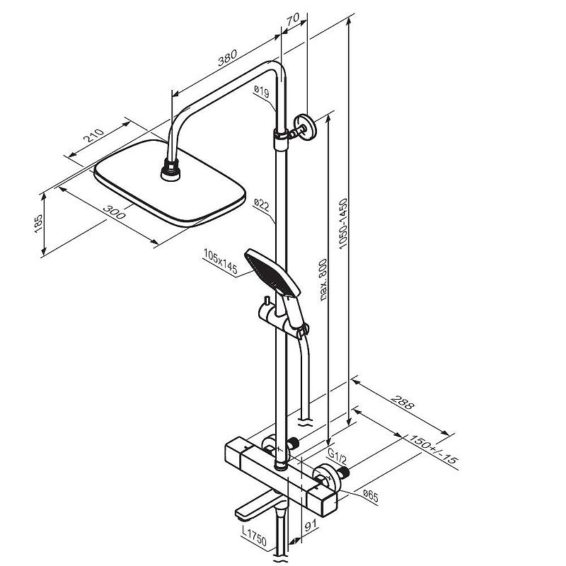 Душевая стойка Damixa Gala 953810000 с термостатом Хром