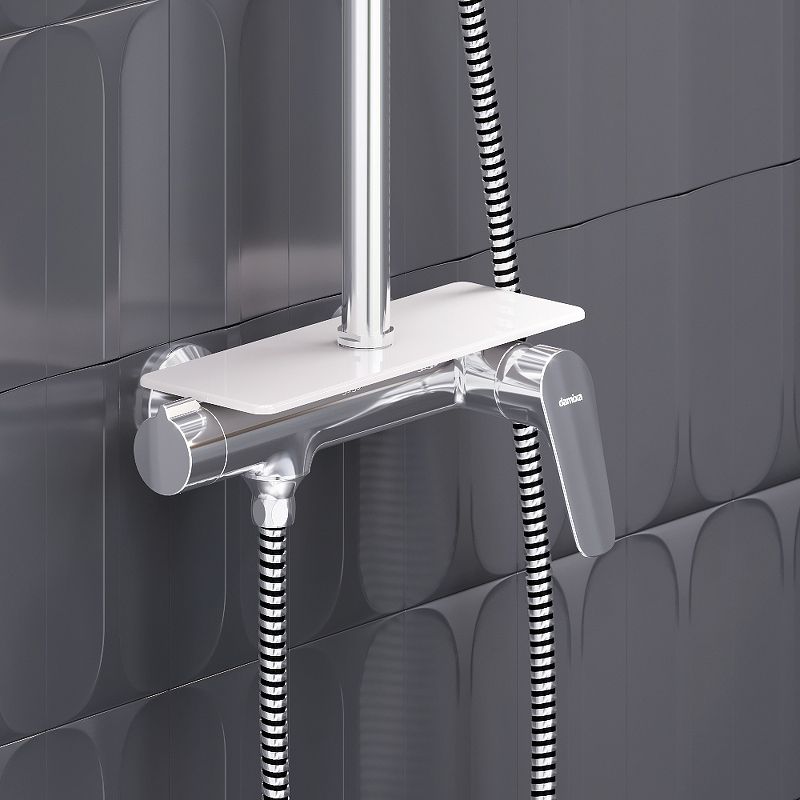 Душевая стойка Damixa Jupiter 977780000 ХромСтильный и лаконичный дизайн душевой системы Jupiter прекрасно подойдет как для классической, так и для современной ванной комнаты. Благодаря телескопической штанге с диапазоном регулировки в 400 мм водные процедуры будут одинаково комфортны абсолютно для всех членов семьи. Непревзойдённый комфорт и удобство: смеситель выполнен в виде компактной полочки из закаленного стекла, где вы можете хранить все необходимые вещи. Встроенный крючок для мочалки также станет приятным дополнением. Благодаря большому количеству форсунок с микроотверстиями, которые распределяют поток мягкими равномерными струями, вы сможете наслаждаться расслабляющим эффектом настоящего домашнего SPA. Переключайте потоки воды между ручной и тропической лейками плавным поворотом левой ручки смесителя. Угол наклона тропической лейки можно регулировать. Инновационное покрытие High Gloss надежно защищает хромовую поверхность душевой системы от мелких повреждений и сохраняет ювелирный блеск на долгие годы.