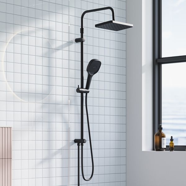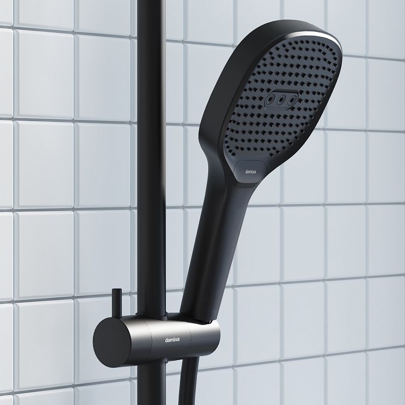Душевая стойка Damixa Merkur 940000300 Черная матоваяЧистые геометричные линии душевой системы Merkur в сочетании с черным матовым покрытием идеально впишутся в интерьер современной ванной комнаты в скандинавском стиле. Несмотря на минималистичный дизайн, душевые системы этой серии отличаются широким функционалом и необычайной эргономичностью. Настоящее SPA прямо у вас дома: увеличенный размер тропической лейки с регулируемым углом наклона и 3 режима ручного душа сделают ваши ежедневные ритуалы незабываемыми. Благодаря телескопической штанге с диапазоном регулировки в 400 мм водные процедуры будут одинаково комфортны абсолютно для всех членов семьи. Простота и минимализм во всем: переключайте потоки воды между ручной и тропической лейкой всего одним нажатием. Благодаря функции очистки резиновых форсунок Rub&Clean поддерживать чистоту стало еще проще. Специальное PVD-покрытие гарантирует чрезвычайную прочность душевой системы. Матово-черная поверхность не выцветает с годами и устойчива к механическим повреждениям, загрязнениям и отпечаткам пальцев.