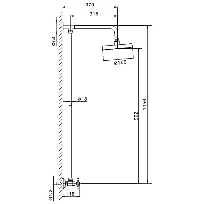 • Размер верхнего душа, см: