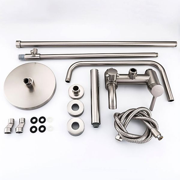 смеситель, душевая стойка, верхний душ, душевая лейка, душевой шланг, держатель для душевой лейки, настенный держатель, отражатели, эксцентрики