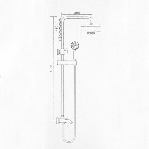Верхний душ диаметром 20 см. Тип струи: тропический дождь