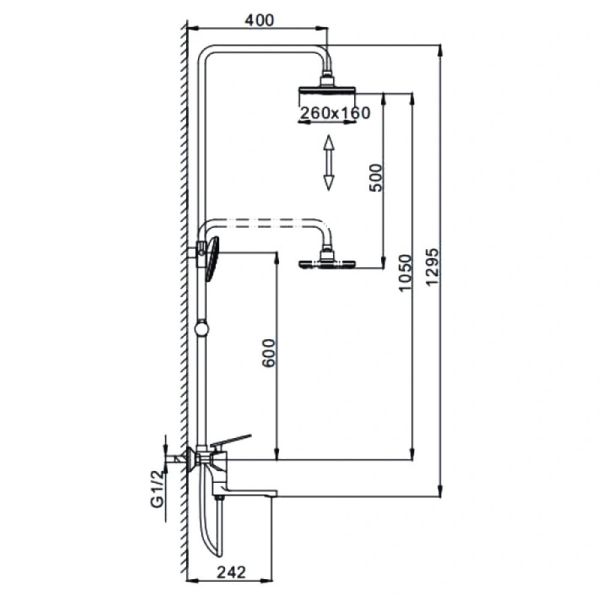Размер верхнего душа, см:129.5