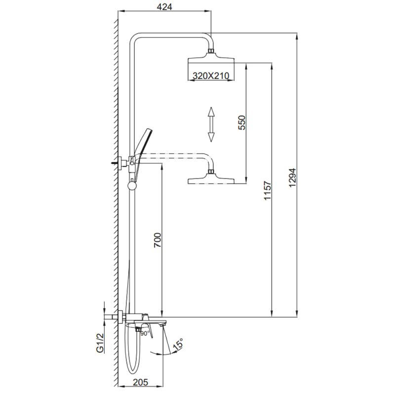 • Размер верхнего душа, см: