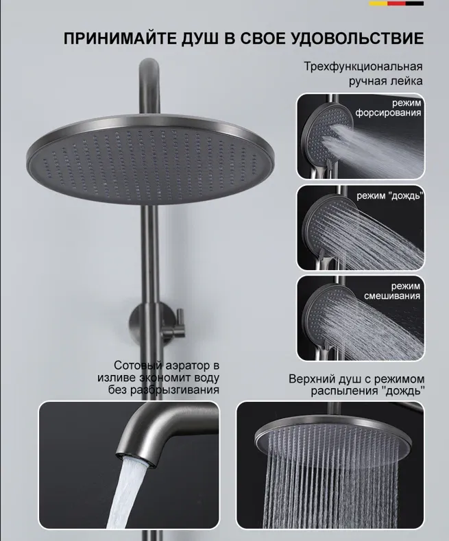 Душевая стойка Gappo G2406-9 оружейная сталь
