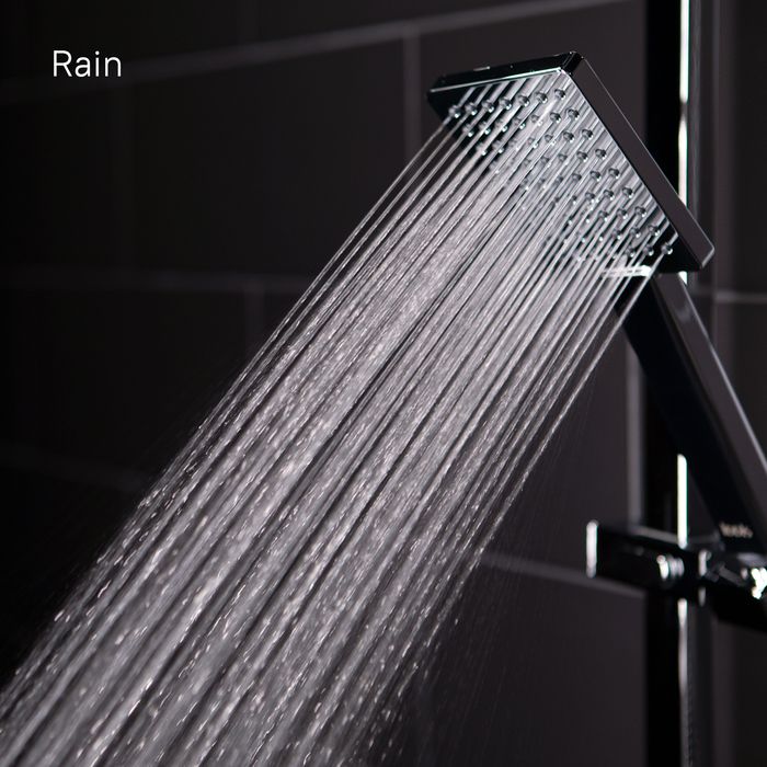 Смеситель для ванны Bild с верхним душем отличают выраженные геометрические формы и уникальный дизайн ручки-петли с тонкой изящной рамкой. Толщина рамки составляет всего 2 мм, при этом прочность ручки не снижается — она прослужит долгие годы. Излив эстетично интегрирован в корпус, вода из него поступает в ванну под комфортным углом. Стойка удобно регулируется по высоте.