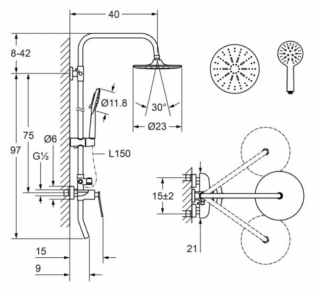 Размер верхнего душа, см 23