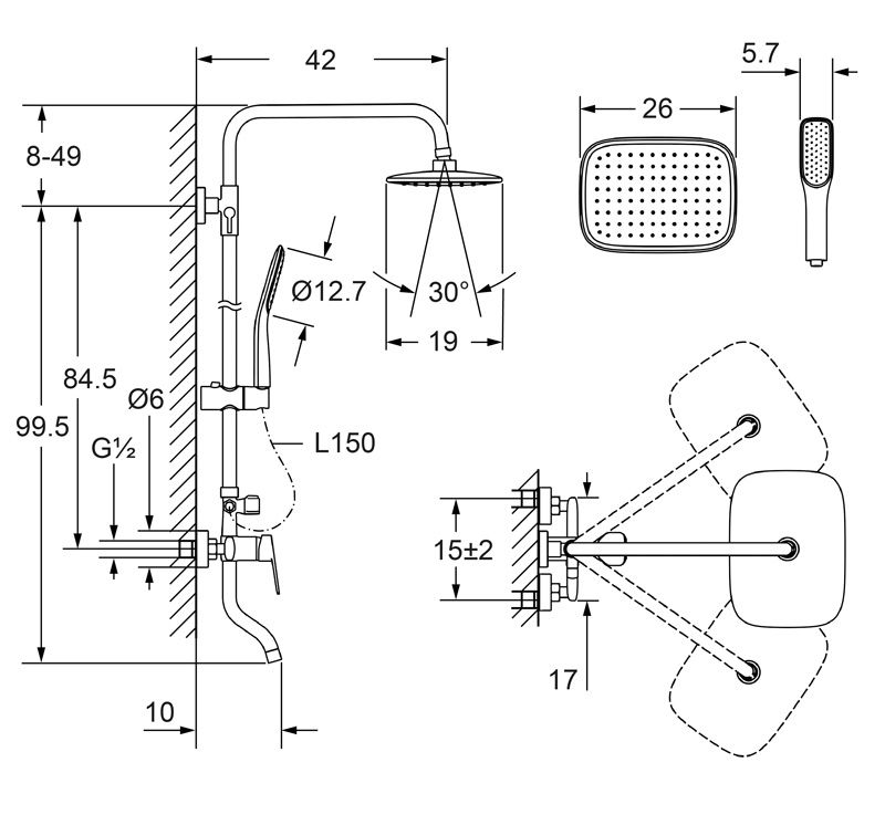 Вылет верхнего душа, см 42
