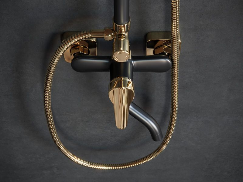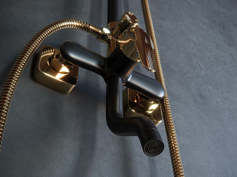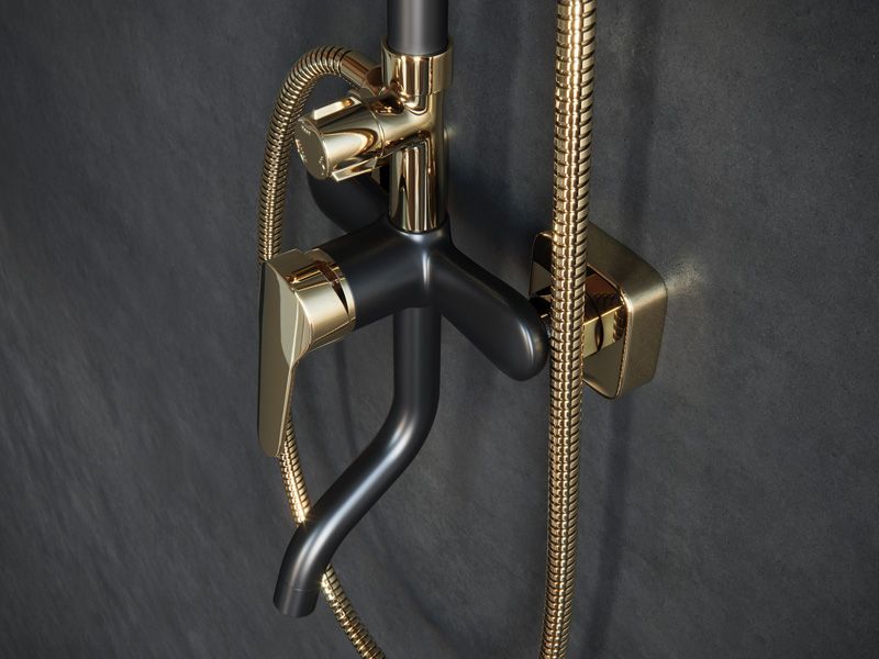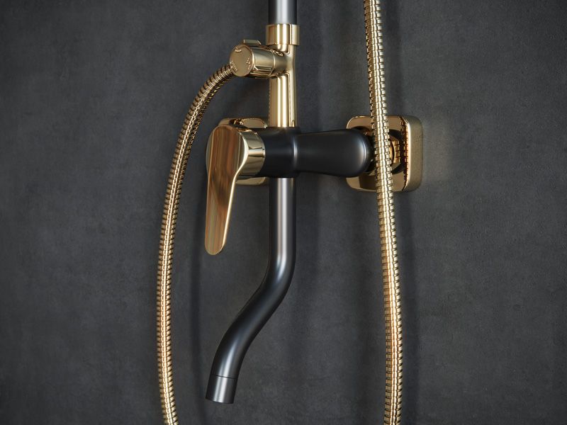 Душевая стойка Laguraty 7000 AX с изливом чёрный/золото купить