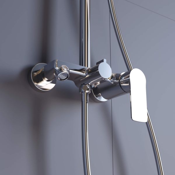 • Головной душ из высокопрочного ABS-пластика оснащён со шарнирным креплением, что позволяет выбрать необходимый угол направления воды;