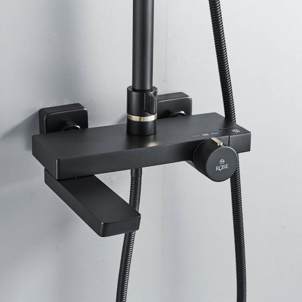 Душевая стойка Rose R1896H с термостатом чёрный матовый купить