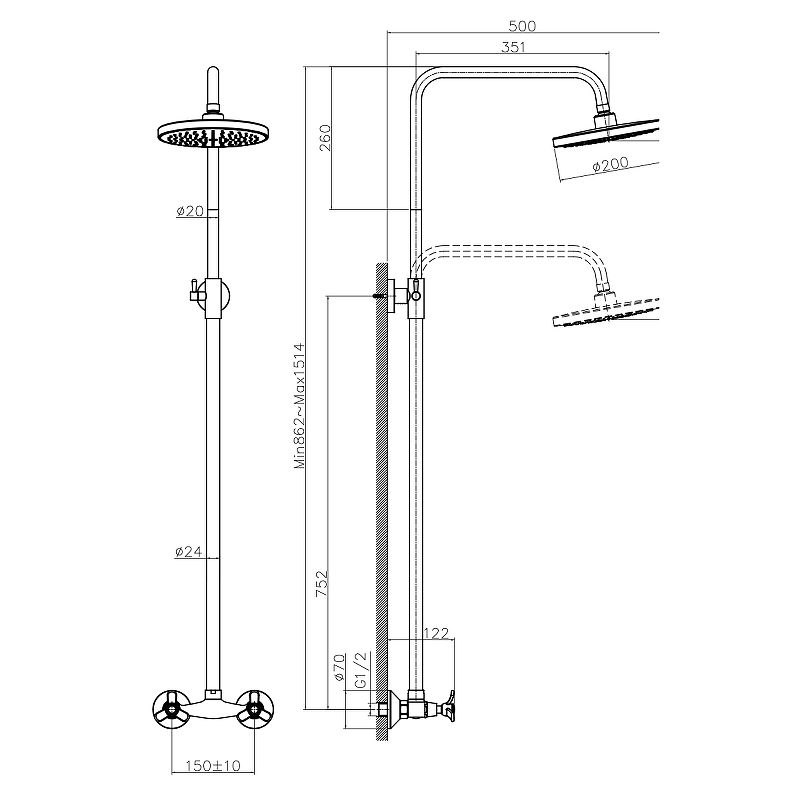 Душевая стойка Rossinka Q02-44 для ванны и душа