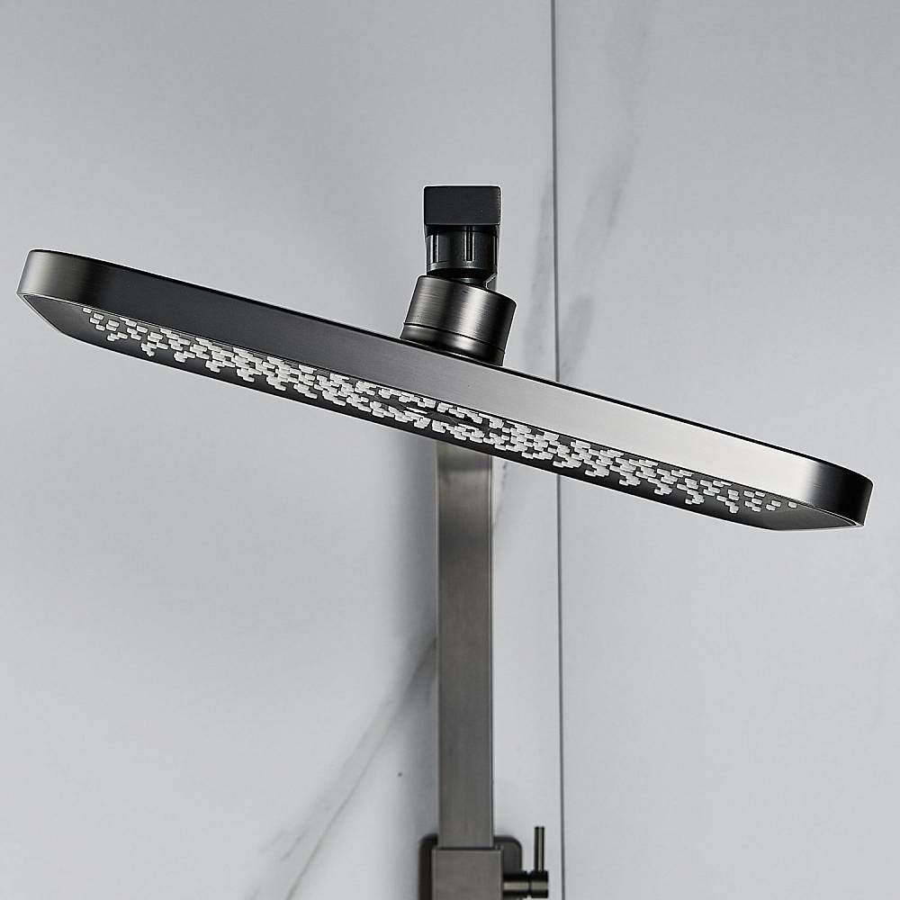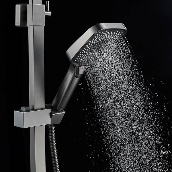 Душевая система Shevanik S7036T, оружейная сталь.Количество режимов струи: 3.Размер верхнего душа: 29x19,5 см.Управление: рычажное.Излив для наполнения ванны: да.