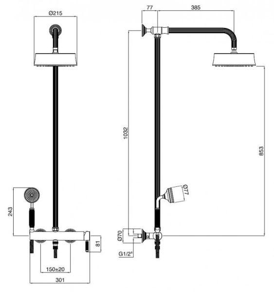 Душевая стойка со смесителем для верхнего и ручного душа, бронза Cezares OLIMP-CD-02-L купить