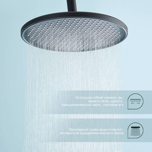 Душевая система Splenka S223.24.06, черный. Материал: нержавеющая сталь. Управление: однорычажное. Механизм: керамический картридж. Стандарт подводки: G 1/2. Форма верхнего душа: круглая. Диаметр верхнего душа: 250 мм. Количество режимов струи ручного душа: 3. Регулируемая душевая штанга: 1130-1480 мм. Излив - функция переключения.