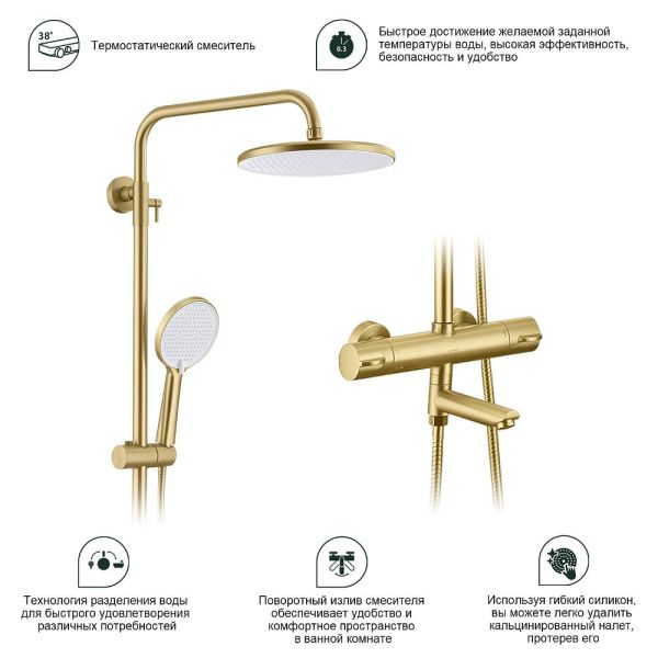 Душевая стойка Splenka S223.26.03 с термостатом золотой сатин купить