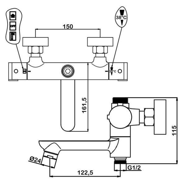 ПРЕИМУЩЕСТВА: - термостатический смеситель для ванны с поворотным изливом в комплекте;