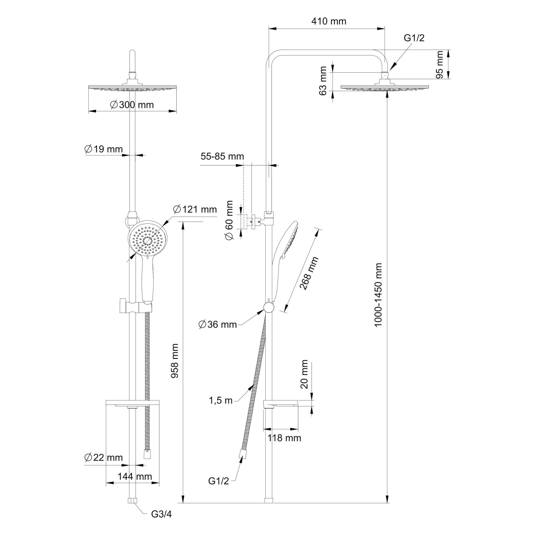 • Размер ручного душа, см:
